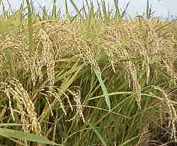 ![]() 9月30日、刈り取り直前の稲。出穂期の低温の影響か、青米が多いなあ。 |