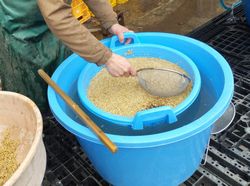 4月5日 種子塩水選、温湯消毒 4月23、26日 播種 5月4、5日 畔塗り 5月8日 肥料散布(元肥) 5月中旬 耕起 5月下旬 代かき2回 5月23〜6月2日 田植え 6月6〜10日 機械除草一回目 6月15〜23日 機械除草二回目 6月27〜7月2日 機械除草三回目 6月〜9月 畔草刈り 7月30日 白酢散布(ササニシキ) 8月9日 白酢散布(ササニシキ) 9月14日 黒米刈り取り〜自然乾燥 9月16〜22日 ササニシキ刈り取り〜機械乾燥 9月23日〜10月2日 さわのはな刈り取り〜機械乾燥 9月30日〜 秋耕起 10月3日 つや姫刈り取り〜機械乾燥 10月7日 コシヒカリ刈り取り〜機械乾燥 10月8日 赤米刈り取り〜自然乾燥