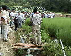 ![]() 2日目は実際に田んぼに出て研修です。おっ、雑草が少ないぞ。 |