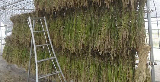 ![]() 黒米と赤米は手刈り、自然乾燥 |