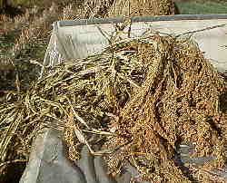 ![]() 乾燥したキビの穂を取って軽トラで小屋まで運びます。 |