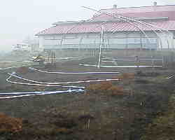 寒いし、日は短いし仕事がはかどらないったら。土の中は大きな石ころがいっぱいでパイプを地面に挿すのが大変。開拓時代の苦労が忍ばれるなあ。